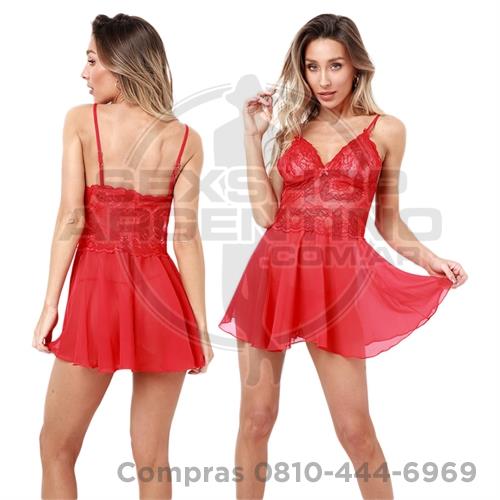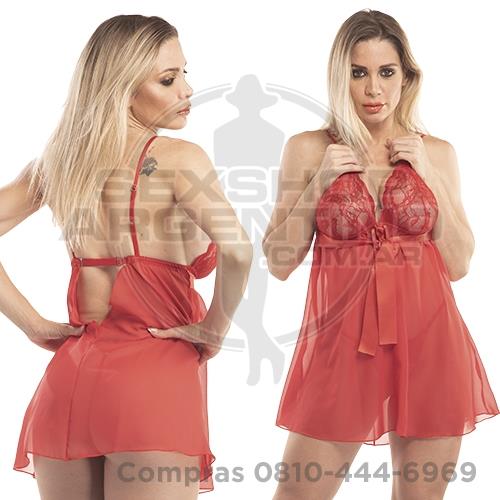 Baby Doll en Gasa con puntilla y moños rojos. Busto abierto y colales