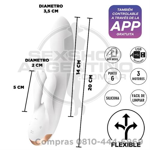Vibrador con estimulador de clitoris carga usb y control bluetooth
