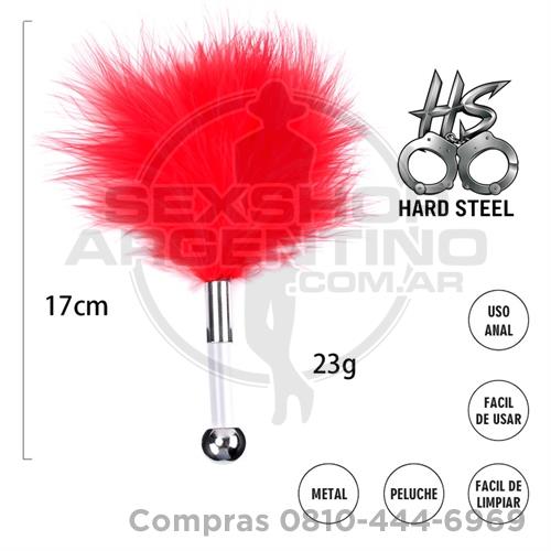 Cosquillero de plumas Rojo con mango plateado