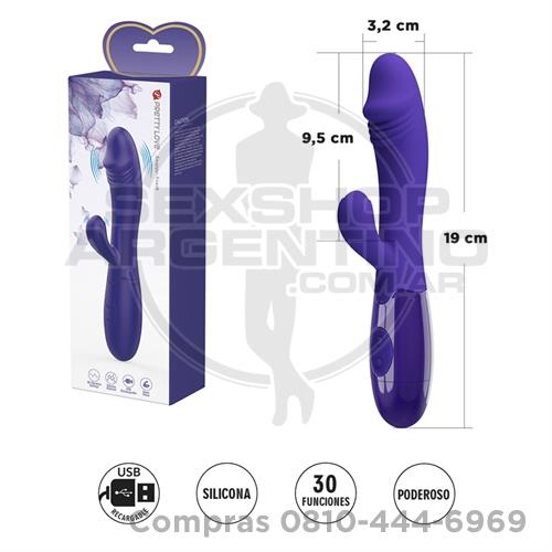 Vibrador con estimulador de clitoris, con 30 funciones y carga USB