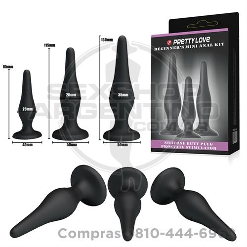 Kit de tres piezas: consolador,dilatador anal y vibrador
