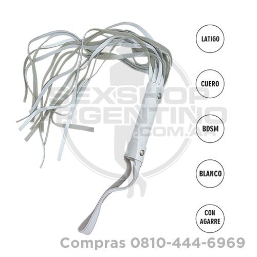 Kit de cuero Esposas + Antifaz + Fusta blanco
