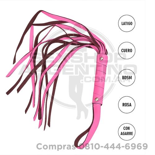 Kit de ecocuero rosa con antifaz, mordaza, esposas y latigo