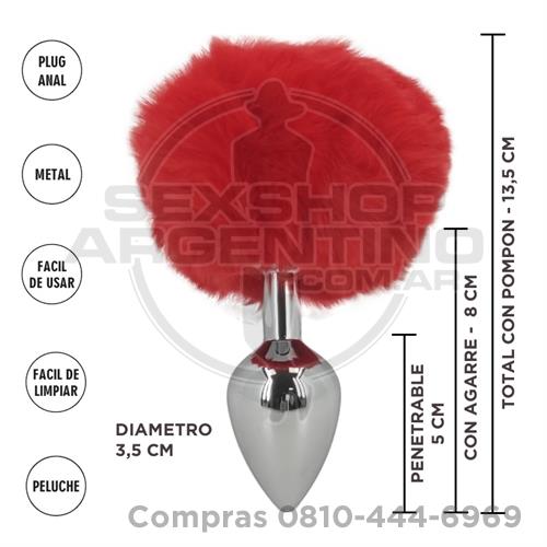 Fornax Roja M : Plug Anal Metalico con Cola Conejo