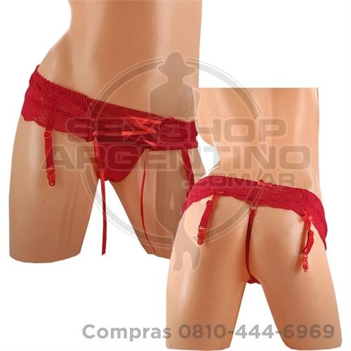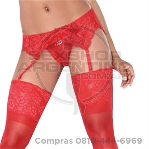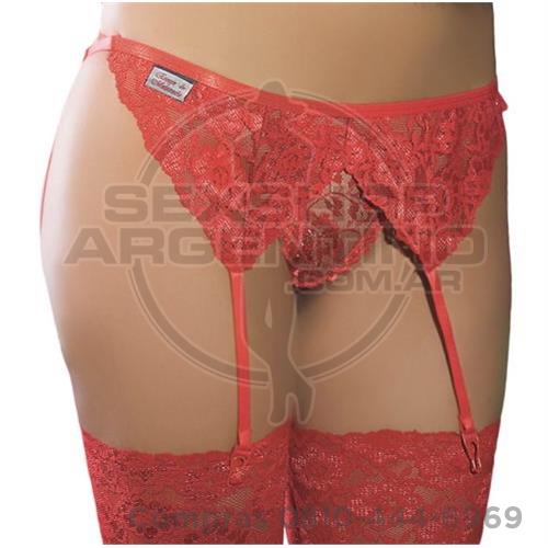 portaligas con puntilla y lycra rojo