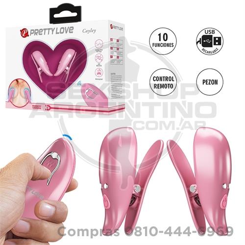 Pinzas para Pezones Rosa con 10 Modos de Vibración y Control Remoto
