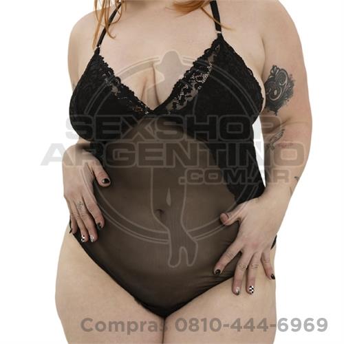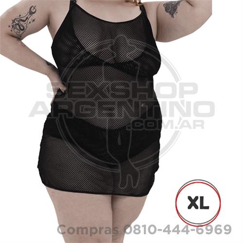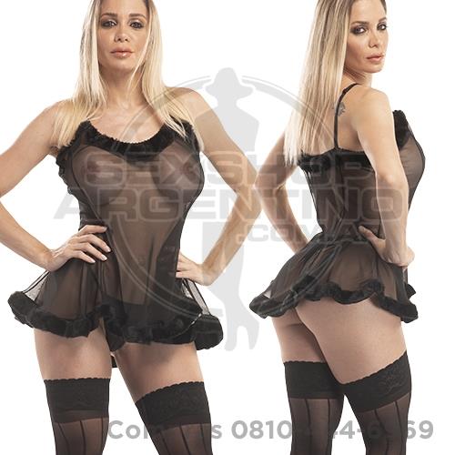 Vestido erótico Xl Gasa Negro Con Peluche Y Tanga