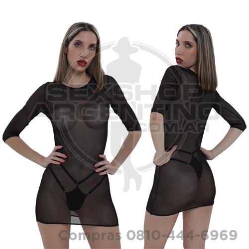 Vestido erótico de Gasa con tanga