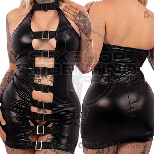 Vestido de vinilo con hebillas al frente