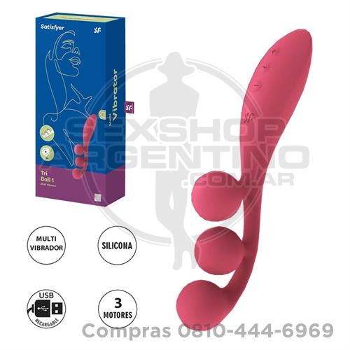 Tri Ball 1 estimulador triple clitorial, vaginal y anal con carga USB